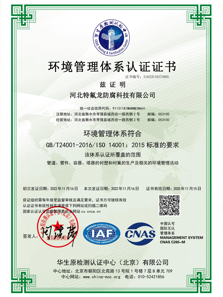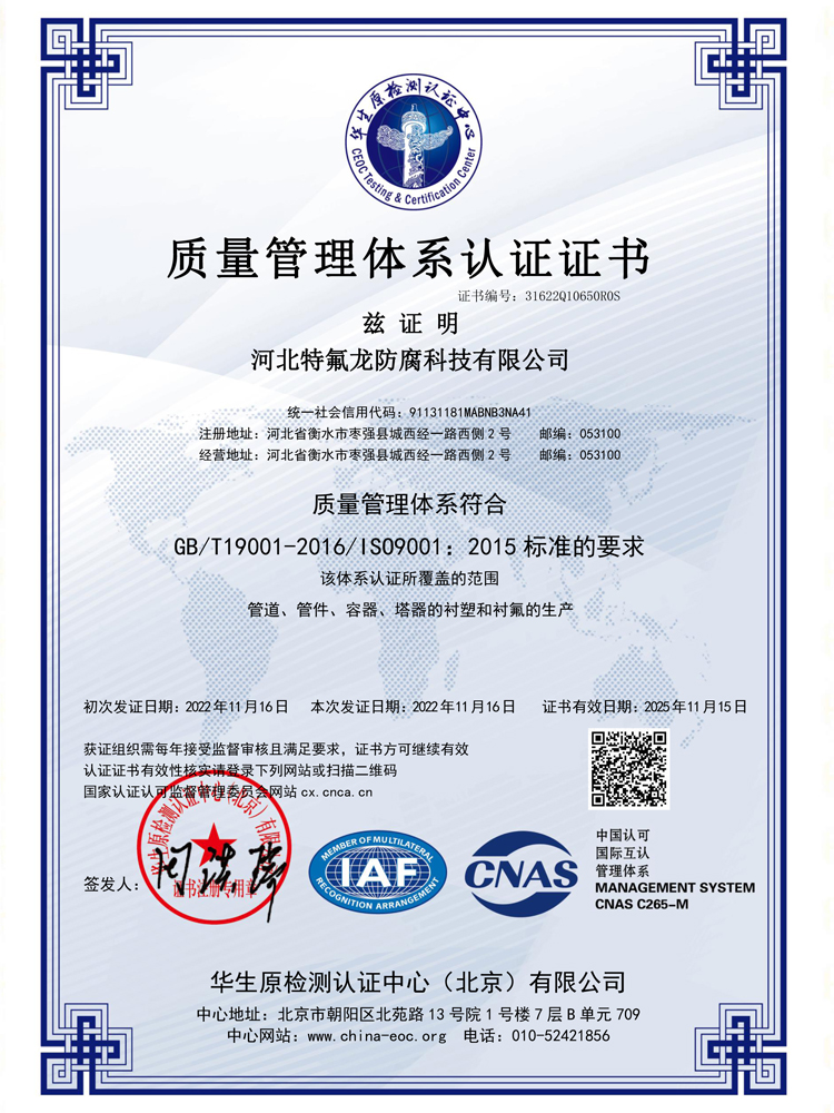 關于我們關于我們河北特氟龍防腐科技有限公司座落于美麗的衡水湖畔,位于河北省衡水市大廣高速棗強入口與240國道交叉口東行1公里,交通方便快捷。 公司是集防(fang)腐技術研發(fa)、應(ying)用、設備(bei)防(fang)腐生產(chan)、銷售(shou)、技術咨詢于一體(ti)的(de)綜合型企業。主要(yao)產(chan)品有:鋼(gang)襯及(ji)玻璃鋼(gang)襯(PTFE、PVDF、FEP、PO、PE、 PVC 、CPVC、PP、PPH)儲罐、管(guan)道(dao)、塔(ta)器(qi)、反應(ying)釜、風(feng)機(ji)、補償(chang)器(qi)及(ji)各(ge)(ge)種非標設備(bei), PTFE、PFA、ETFE、ECTFE、聚脲、鱗片樹脂各(ge)(ge)種涂(tu)層噴(pen)涂(tu)復合襯里(li)設備(bei),以及(ji)玻璃鋼(gang)、儲罐、管(guan)道(dao)、塔(ta)器(qi)等(deng)玻璃鋼(gang)制品。 公司可根據各類防腐材料的耐腐性能及產品特性進行選材,在滿足客戶的生產需求同時,通過選材讓客戶節省采購成本。公司以科技為先導,采用優良生產設備和檢測設備,在產品生產制作上精益求精、不斷創新,提供優良的產品及完善的售后服務,為客戶的安全生產保駕護航......